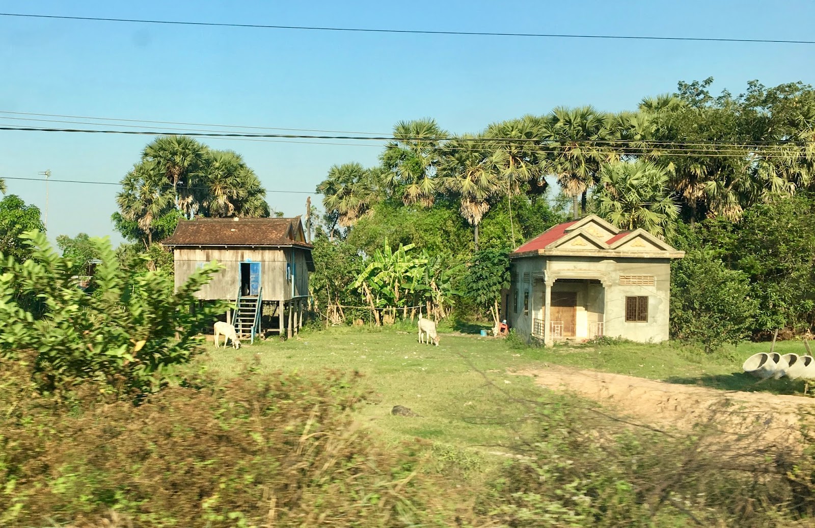 The drive north to Siem Reap is less crowded and a nicer road than the route from the island. Our church friends arranged for a member from Siem Reap, who drives a van, to come pick us up and take us. He was a calm driver, kind and had a comfortable car. We were grateful! Here is some typical countryside.