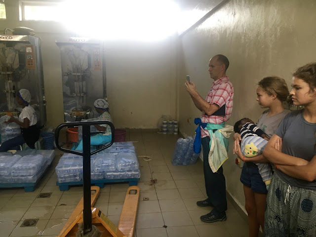 Here are the women who bag the water. They work 8-hour days and make under $100 per month, which is good pay here.